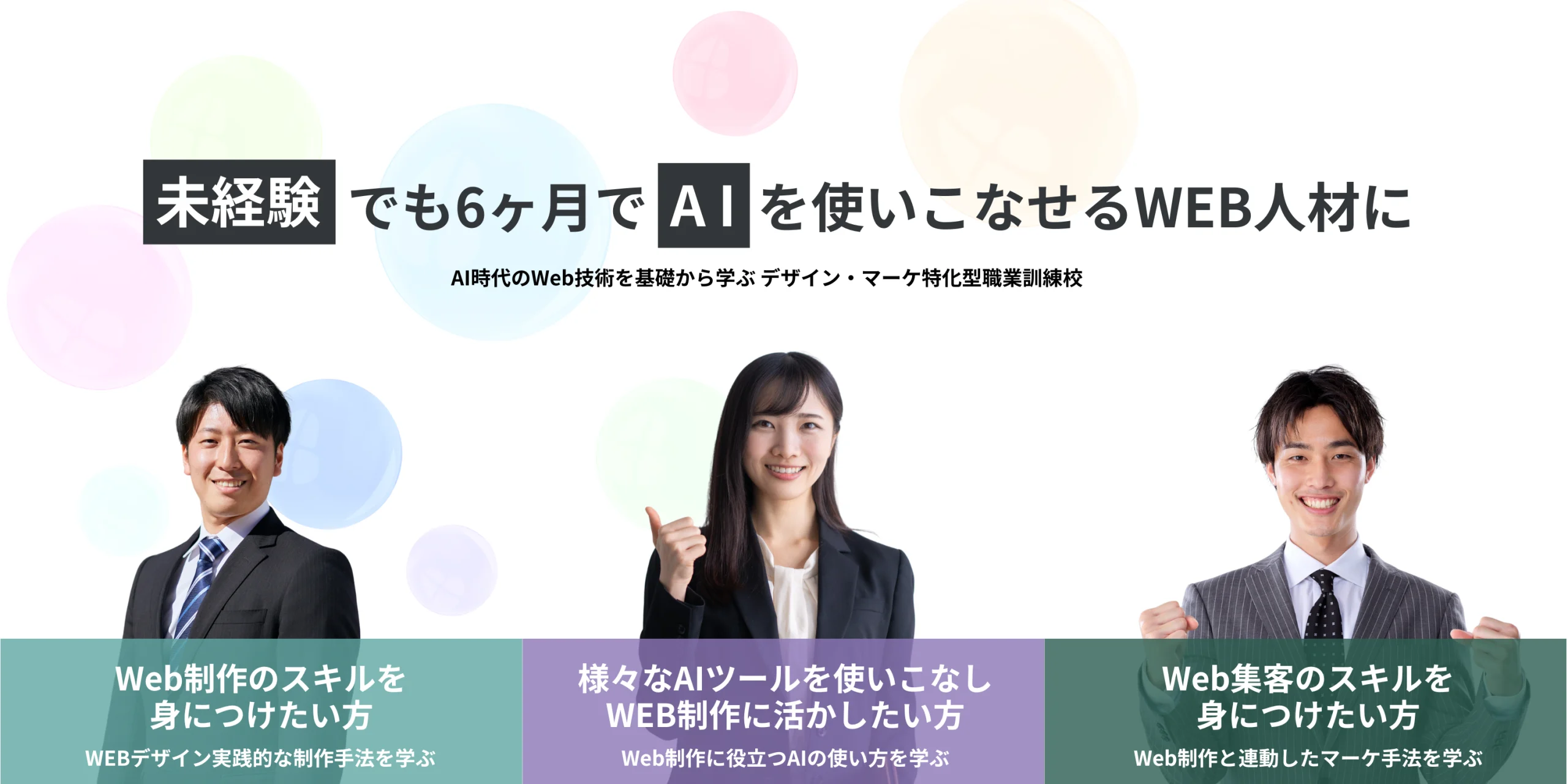 AIキャリアスクールは「AI × Web制作」を最強の武器として身につける職業訓練校です。