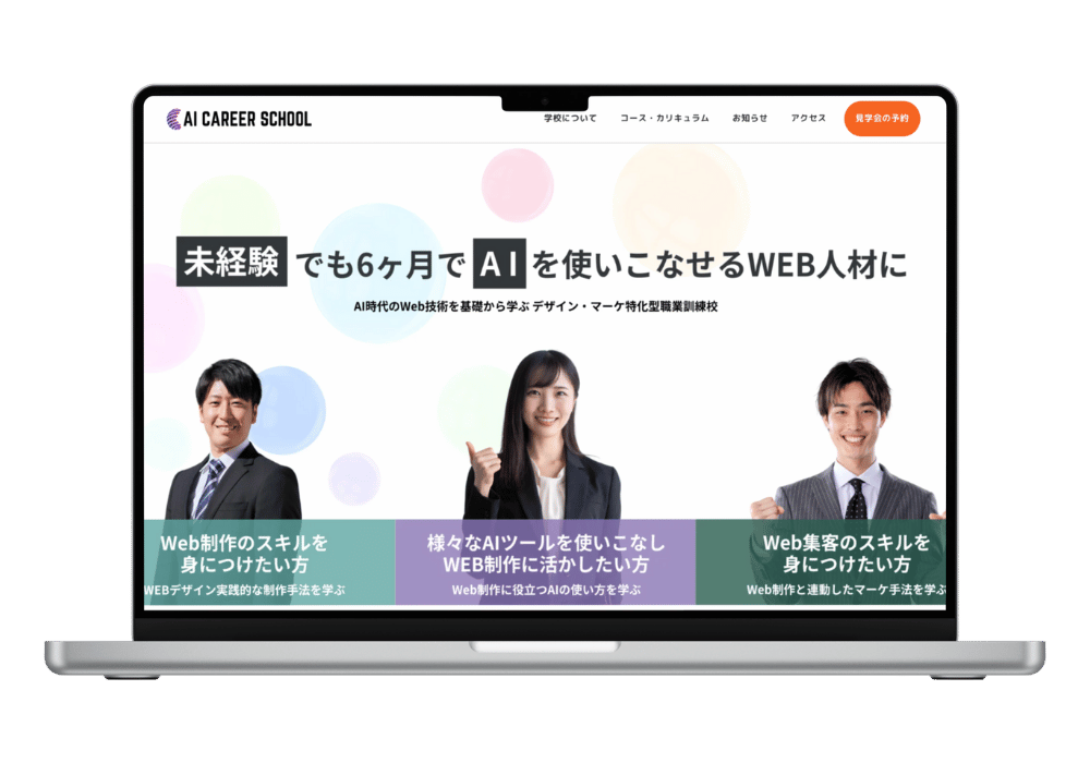 AIキャリアスクールは「AI × Web制作」を最強の武器として身につける職業訓練校です。